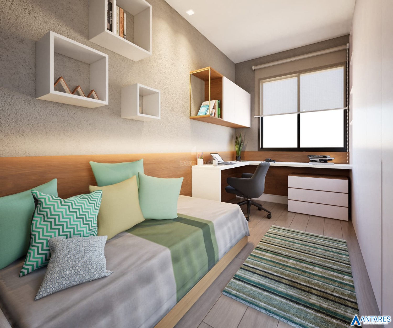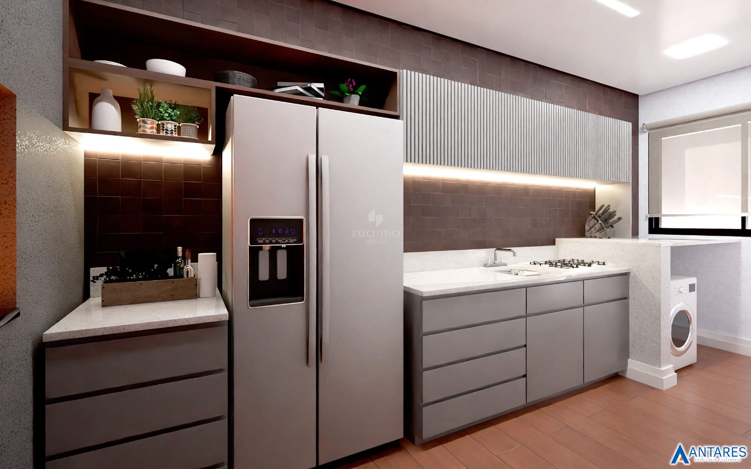 - Pisos em porcelanato e laminado;