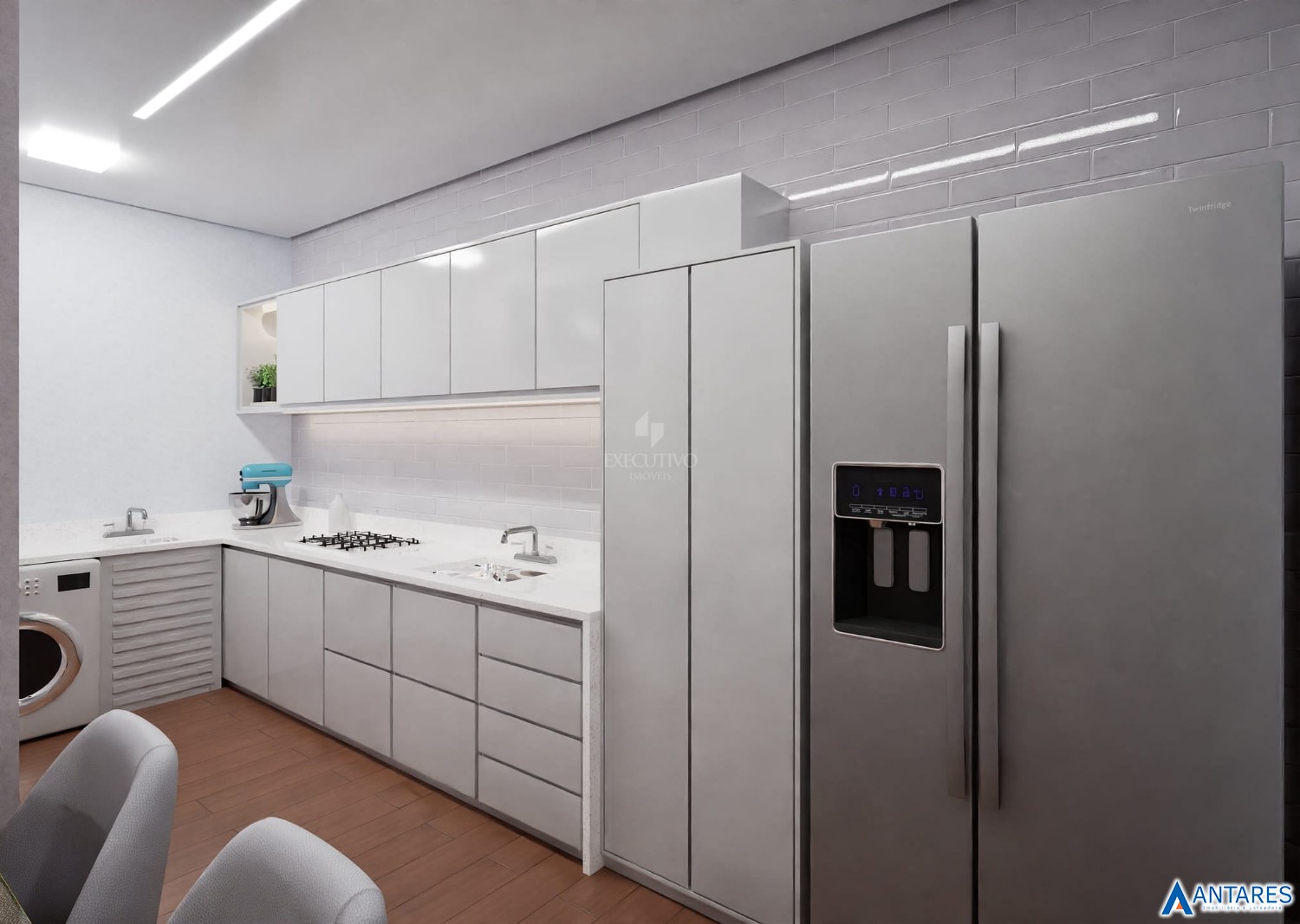 - Pisos em porcelanato e laminado;