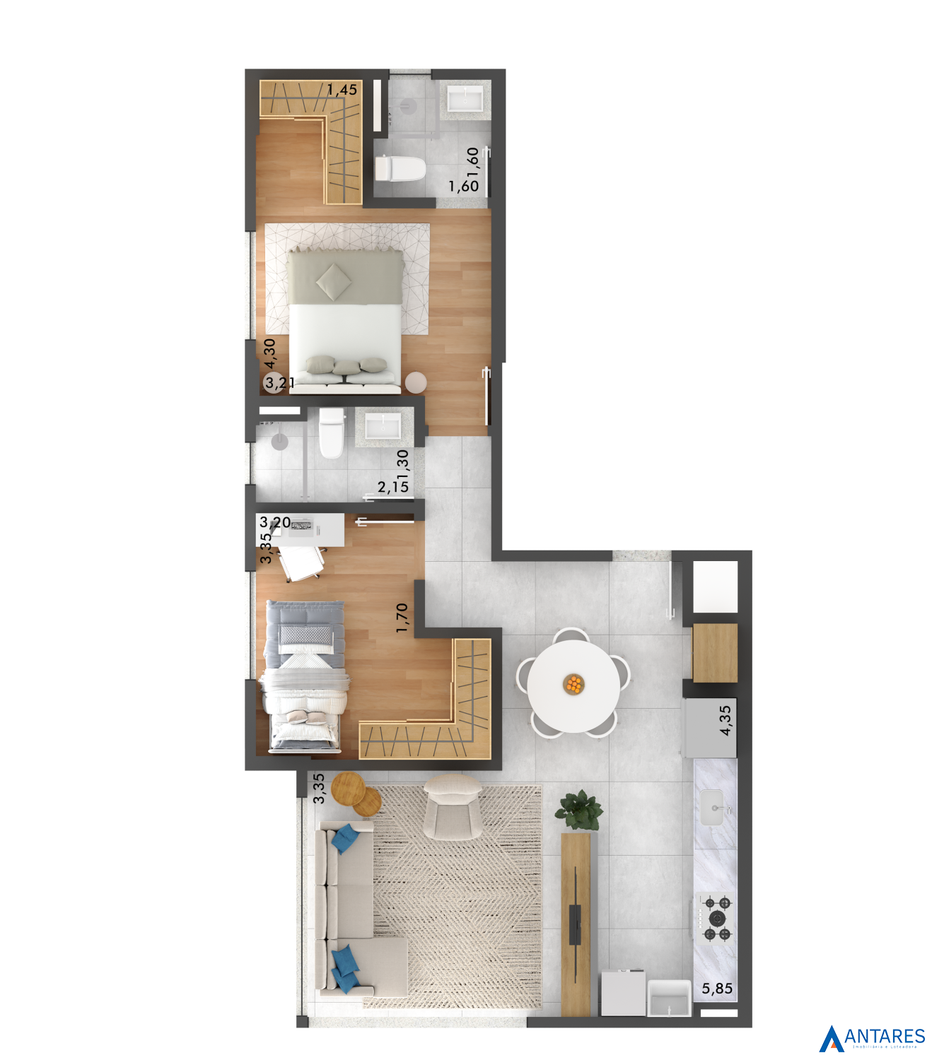 Área Total › 58,58m²