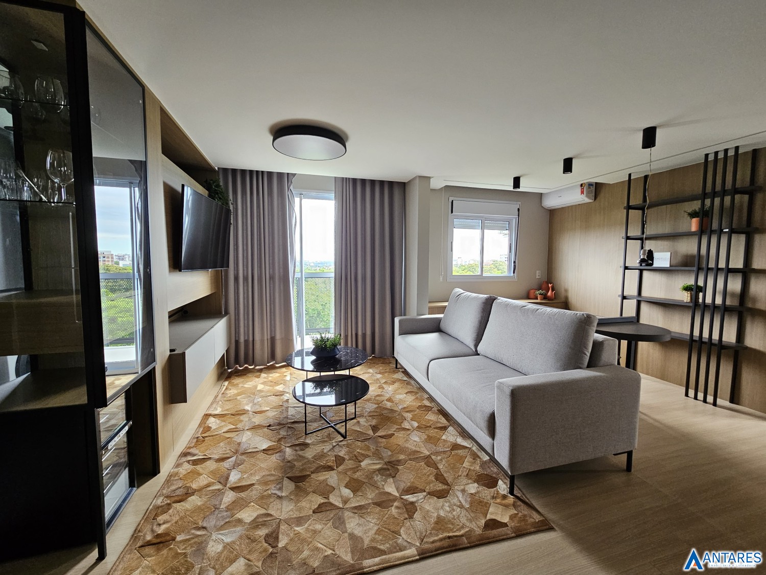 Descrição › Vivance Condomínio Clube, localizado no bairro Universitário, em Lajeado/RS, apartamento mobiliado com 2 dormitórios, sendo 1 suíte, está pronto para morar e totalmente mobiliado. Com uma área total de 124,42m², o imóvel conta com esquadrias em alumínio, churrasqueira, área de serviço, banheiro social e 1 vaga de garagem. Além disso, oferece segurança armada 24 horas e interfone. Uma excelente opção para quem busca conforto e praticidade.
