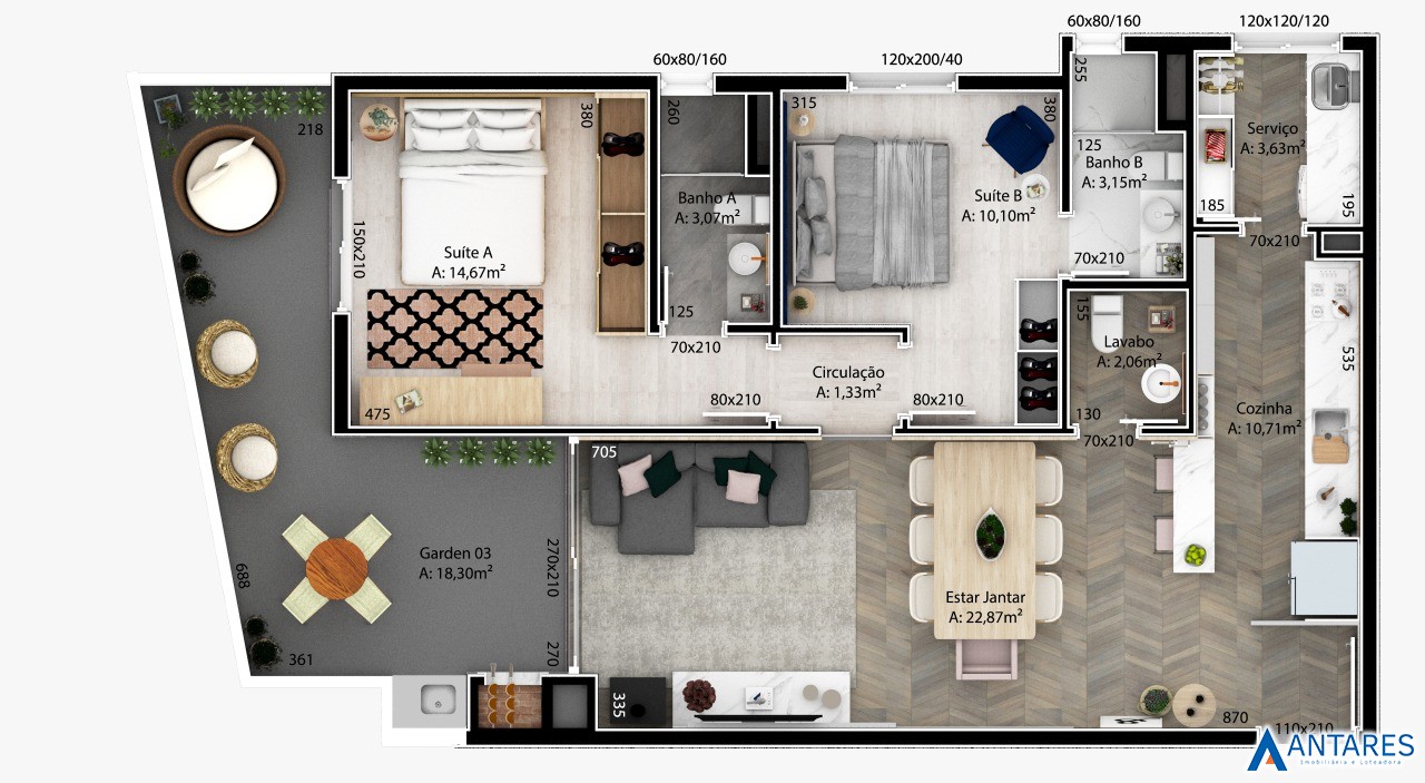 Área Privativa › 104,71m²