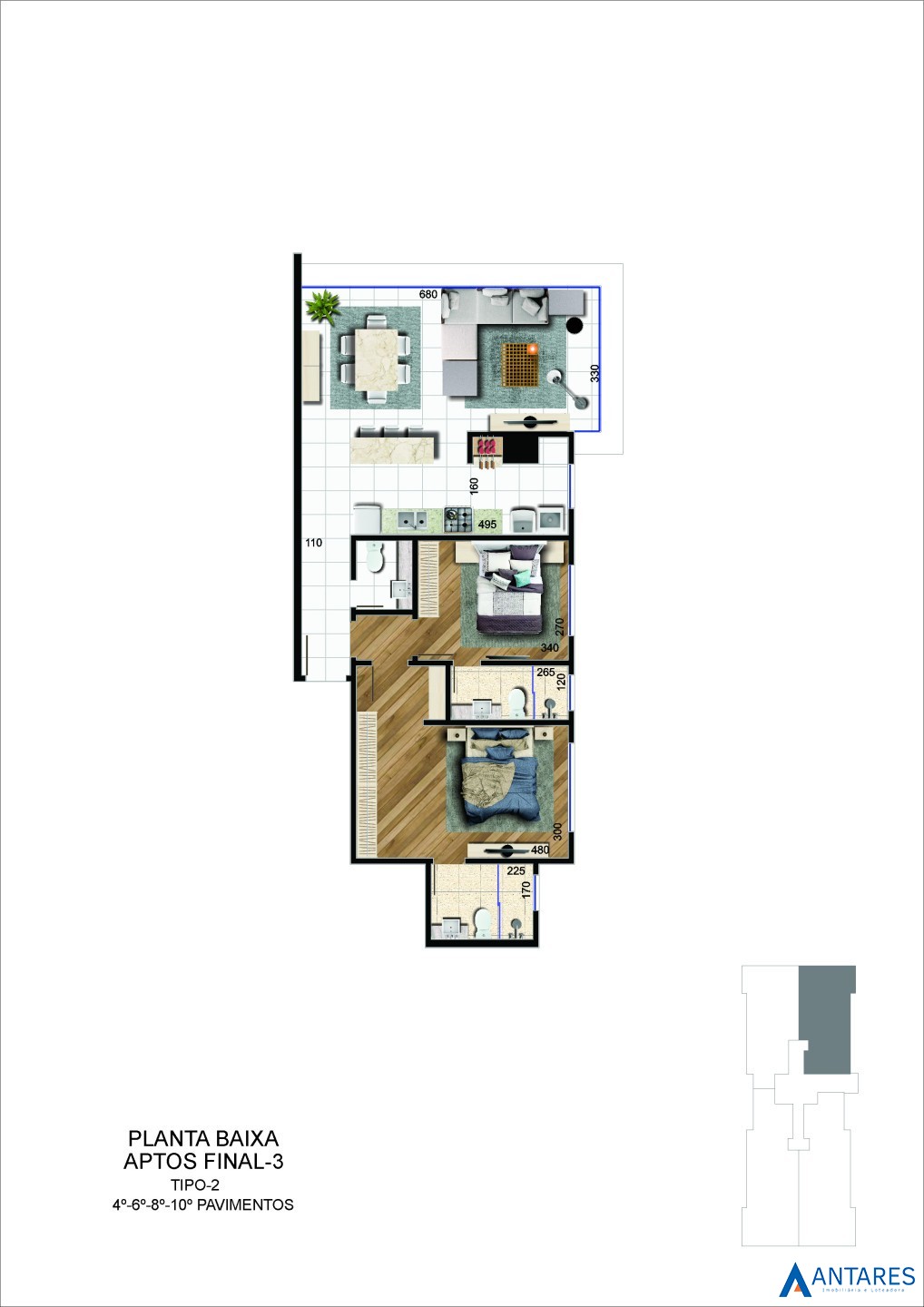 3 Dorm. | 1 Suíte(s) | 2 Box / Vaga(s)