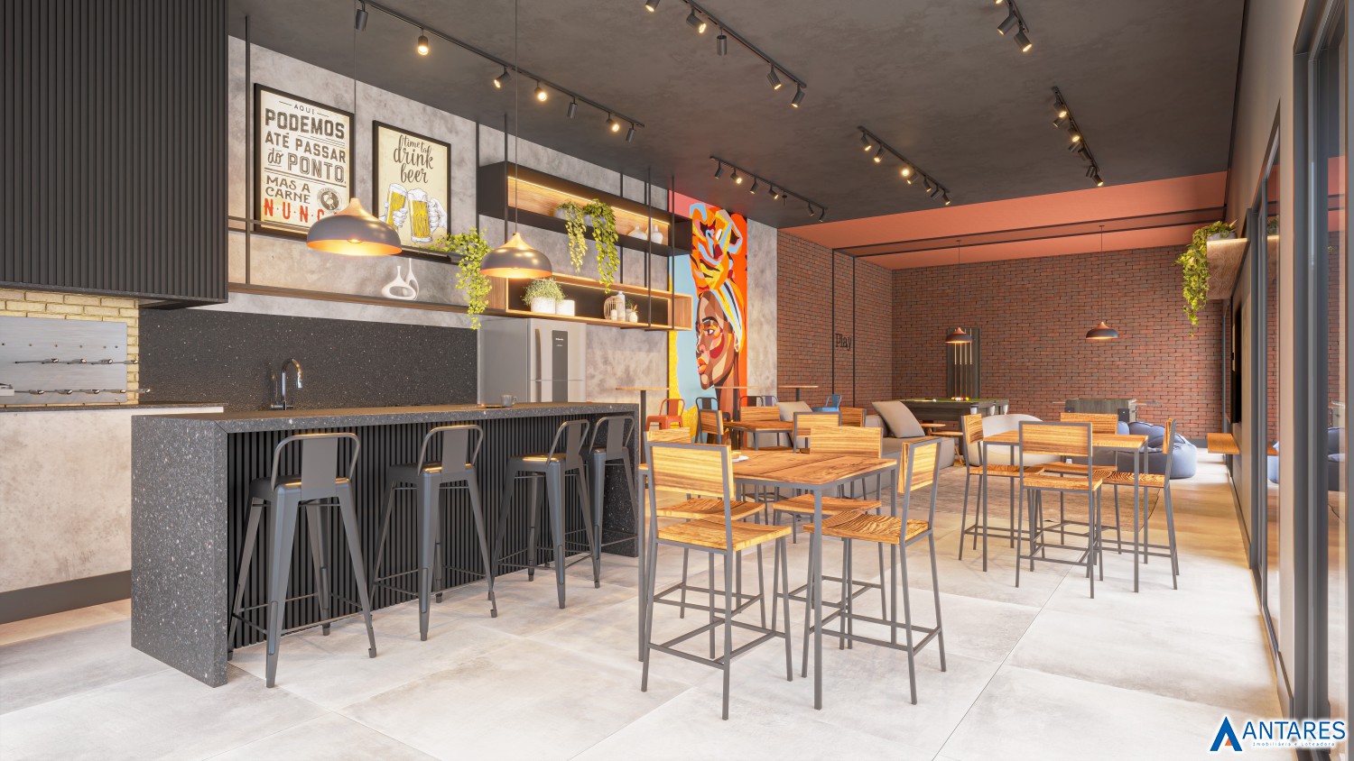O condomínio oferece diversas opções de lazer, bicicletário, piscina adulto e infantil, playground, dois salões de festas. Além disso, conta com elevador, academia, espaço pet, lavanderia pet e home, coworking, quadra beach tennis, quiosque, guarita e hall de entrada,