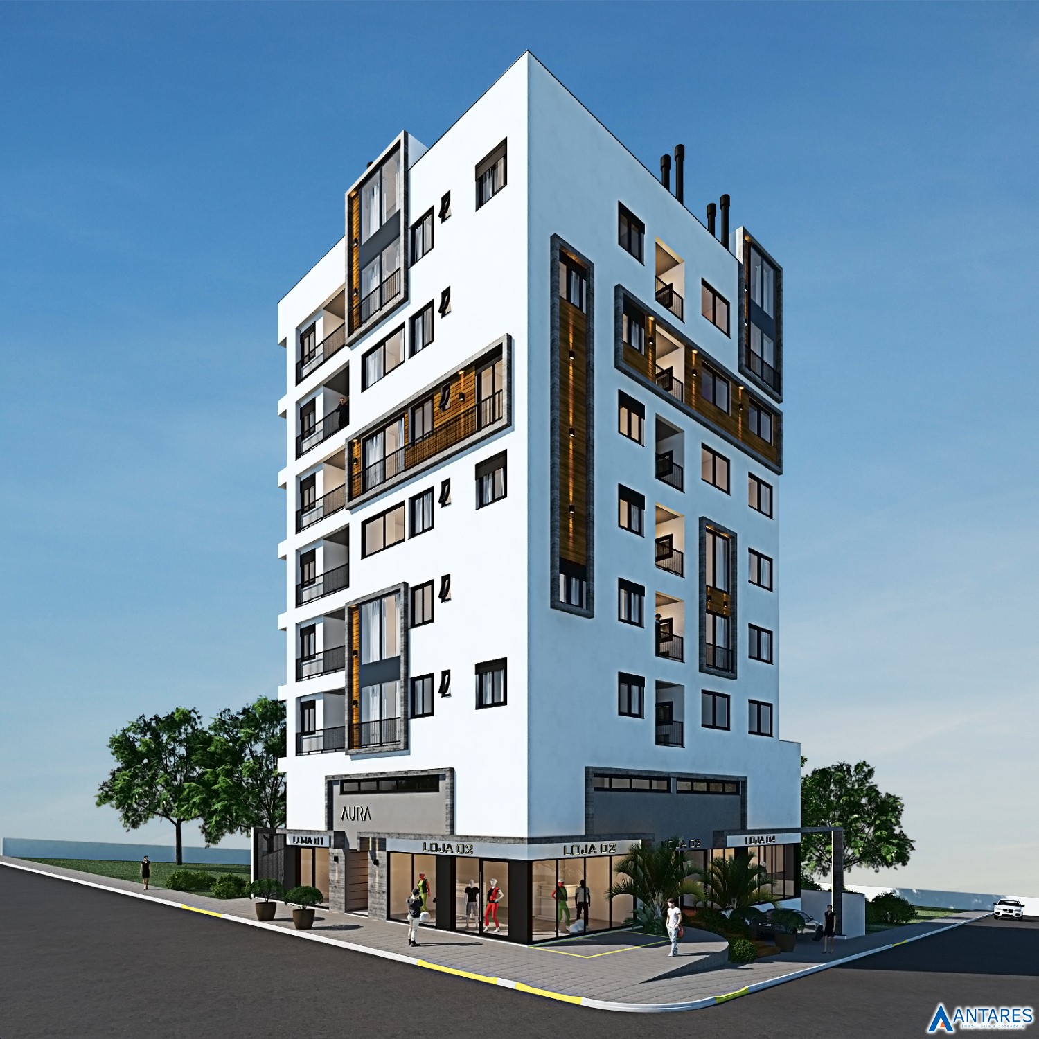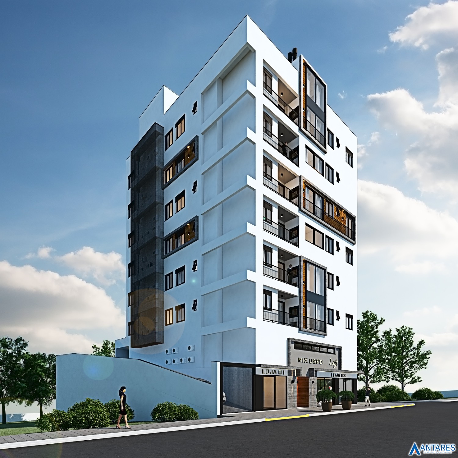* Arquitetura externa com estilo atual e conceito minimalista