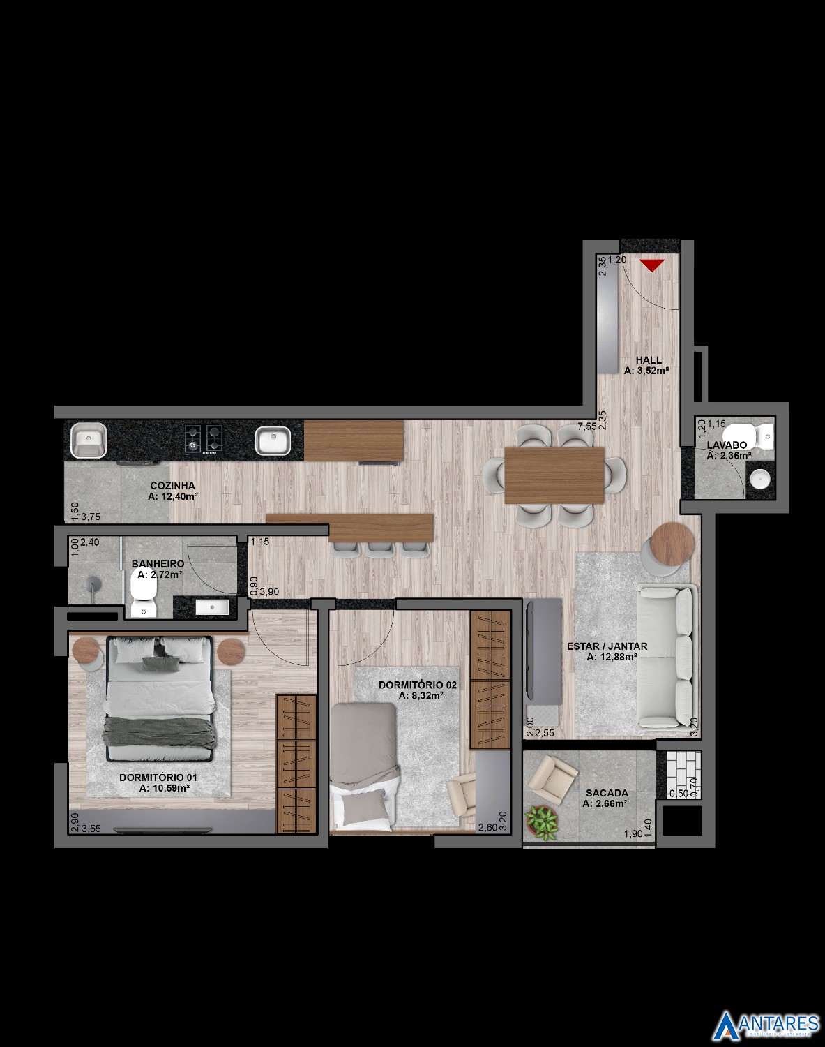Área Privativa › 62,58m²