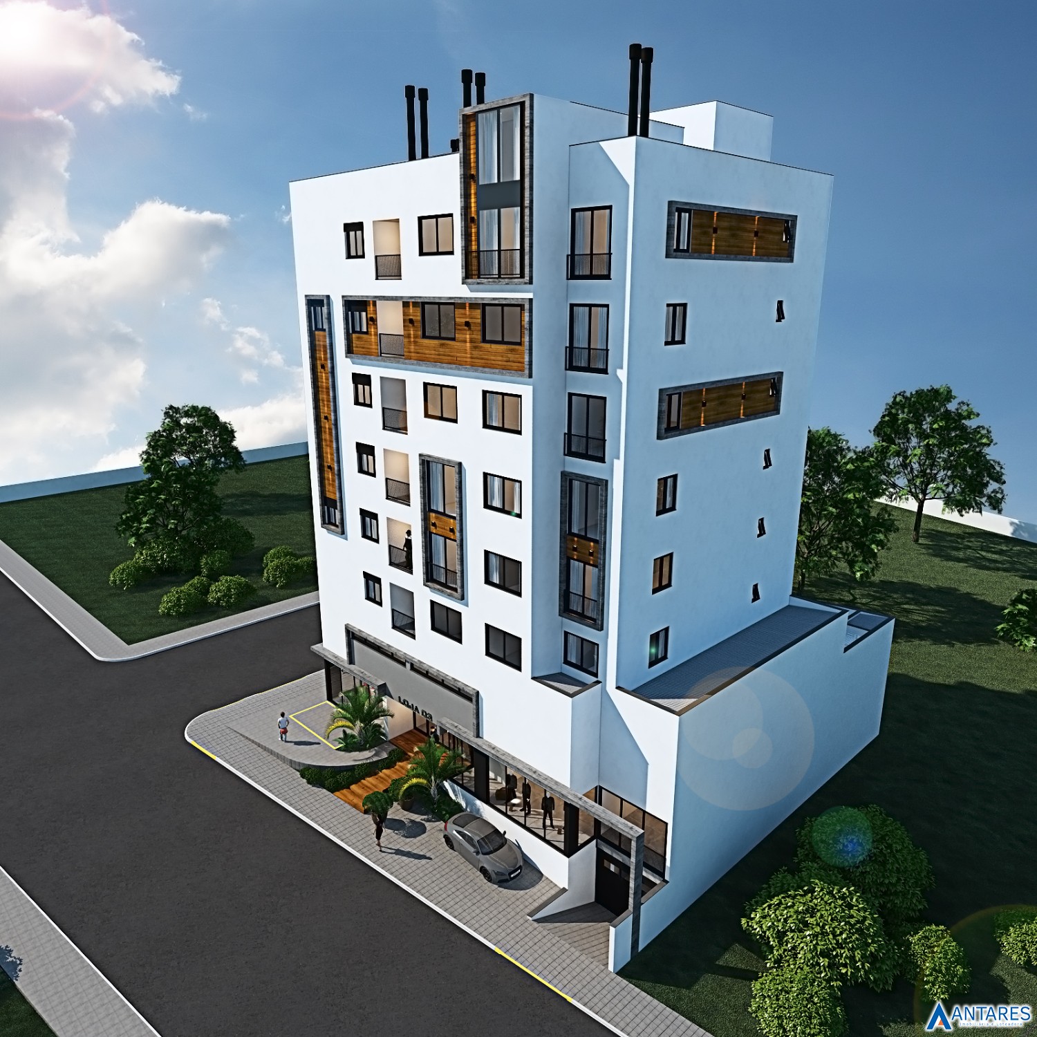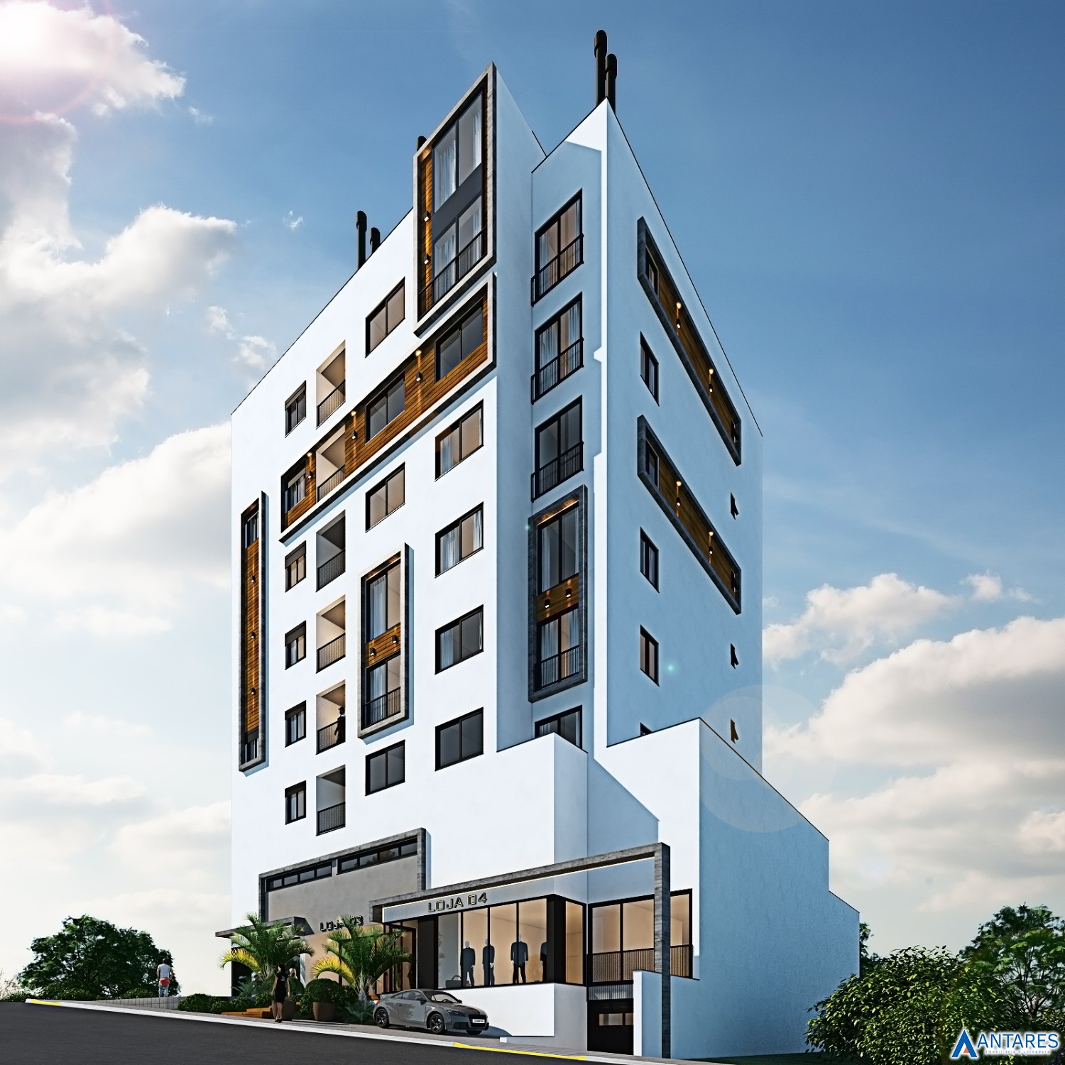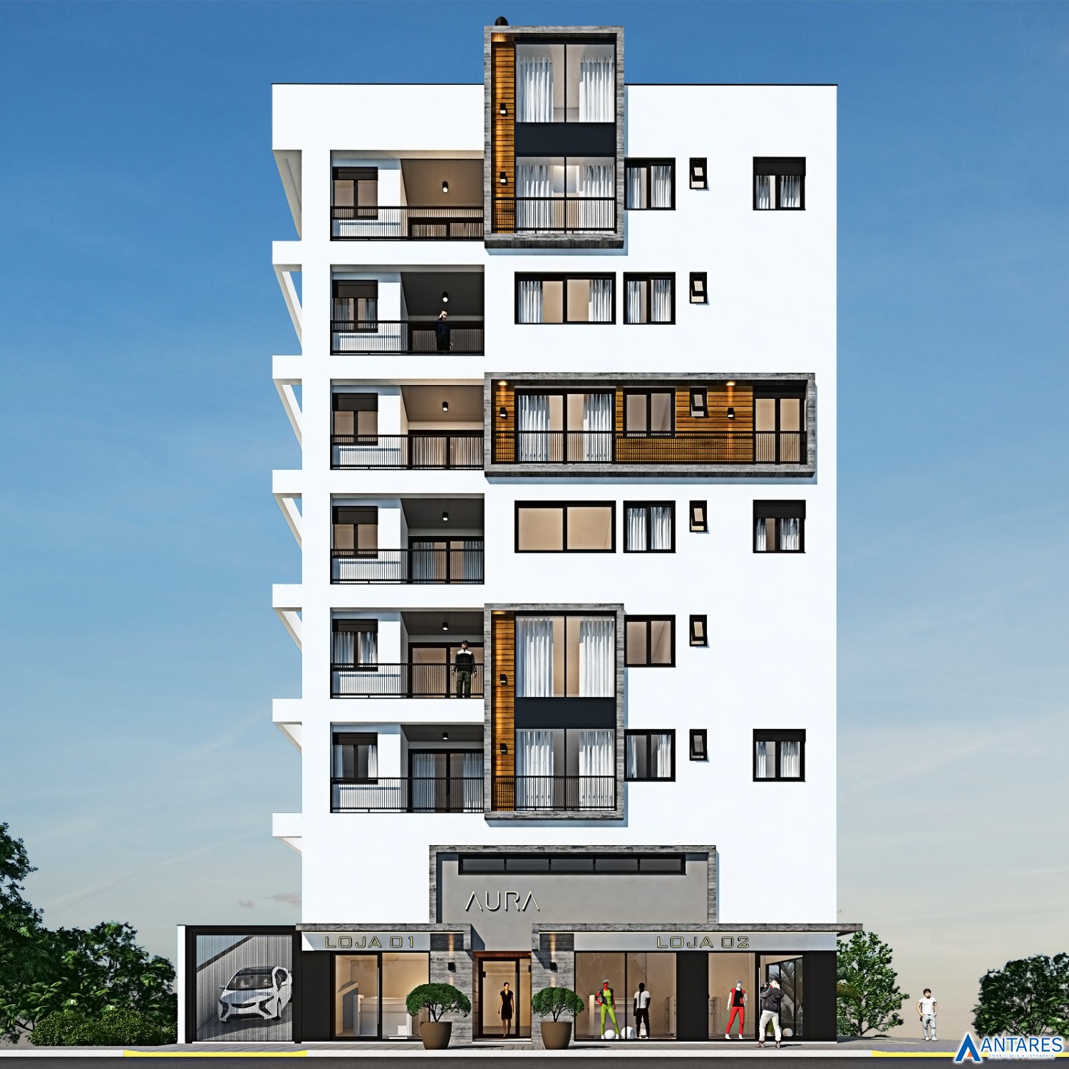 * Arquitetura externa com estilo atual e conceito minimalista