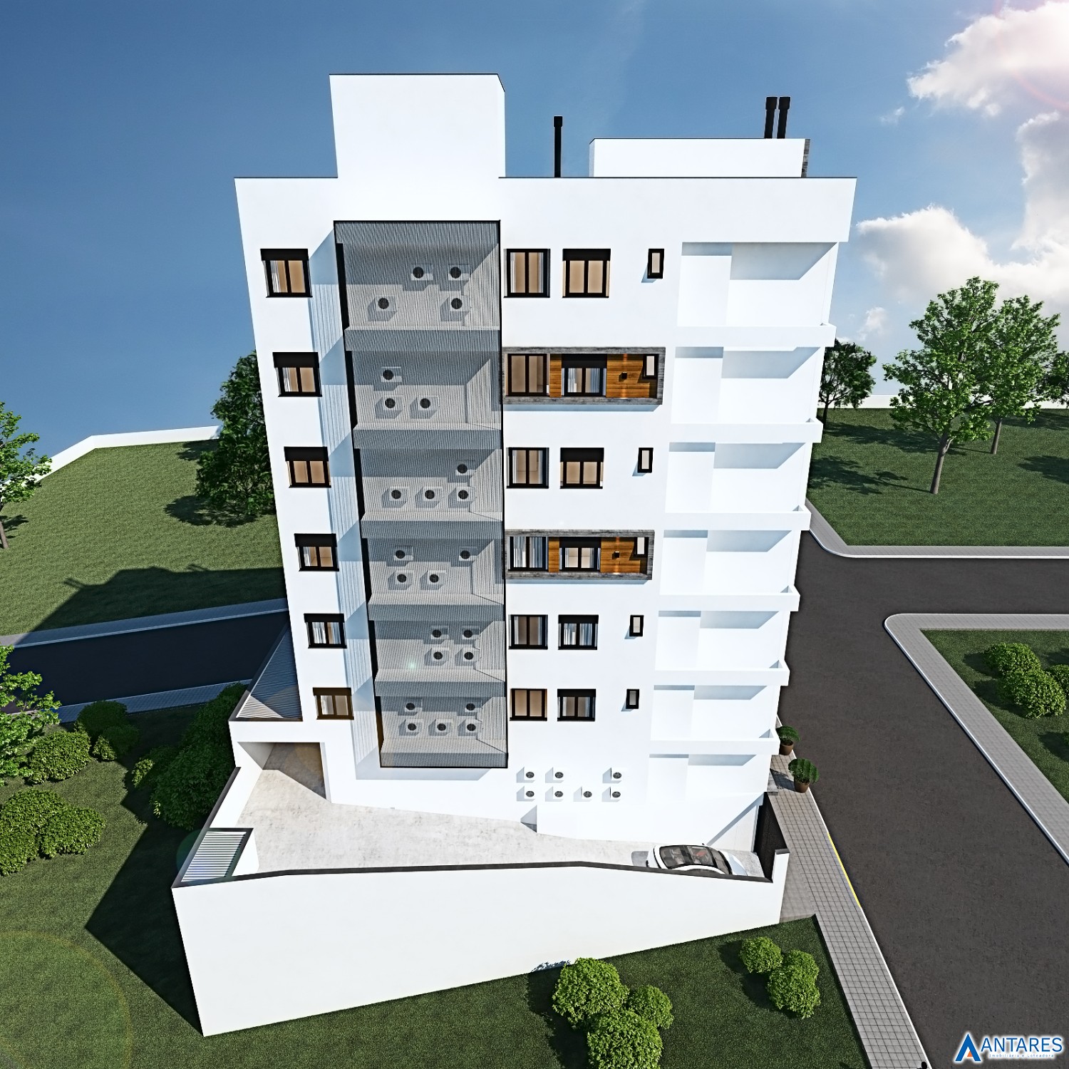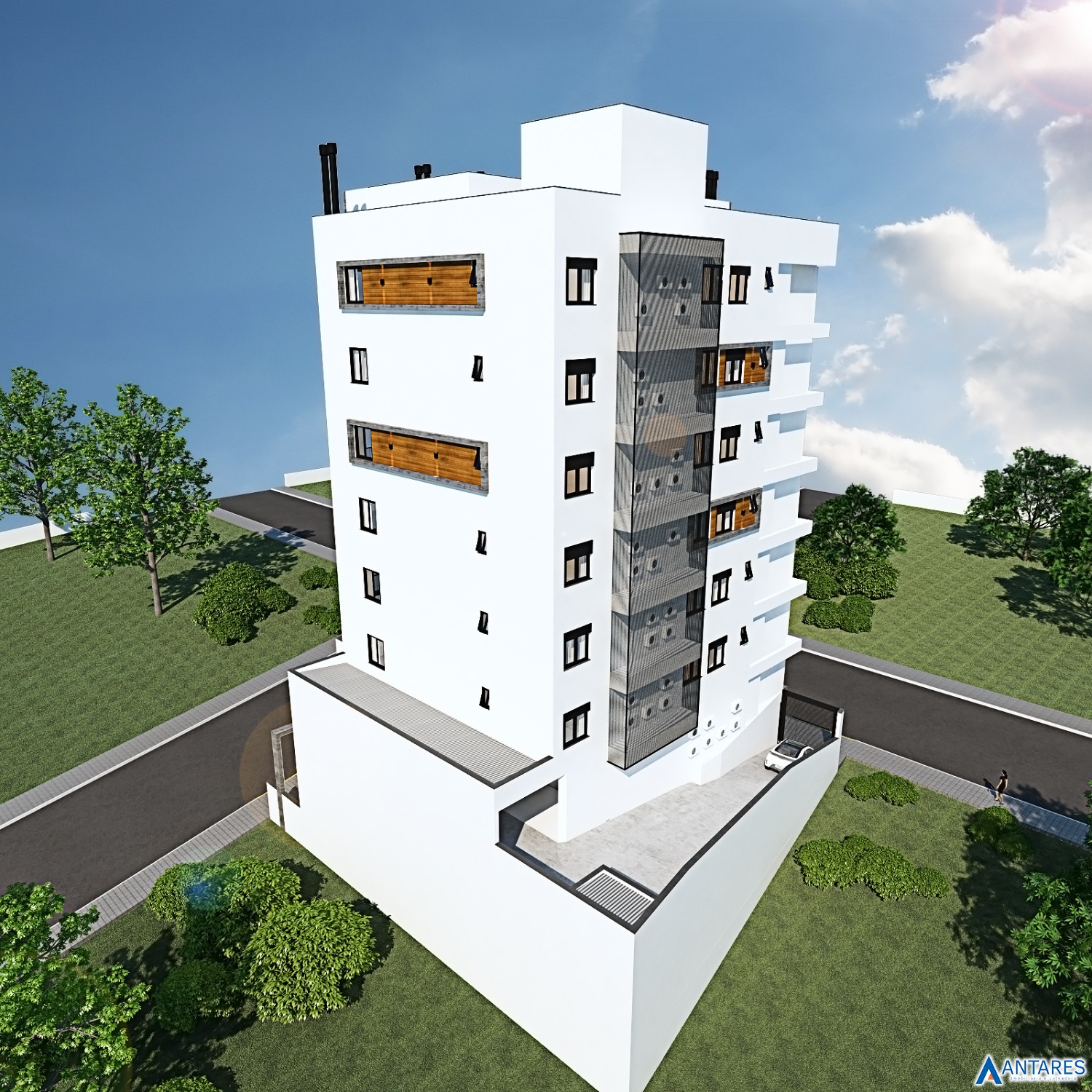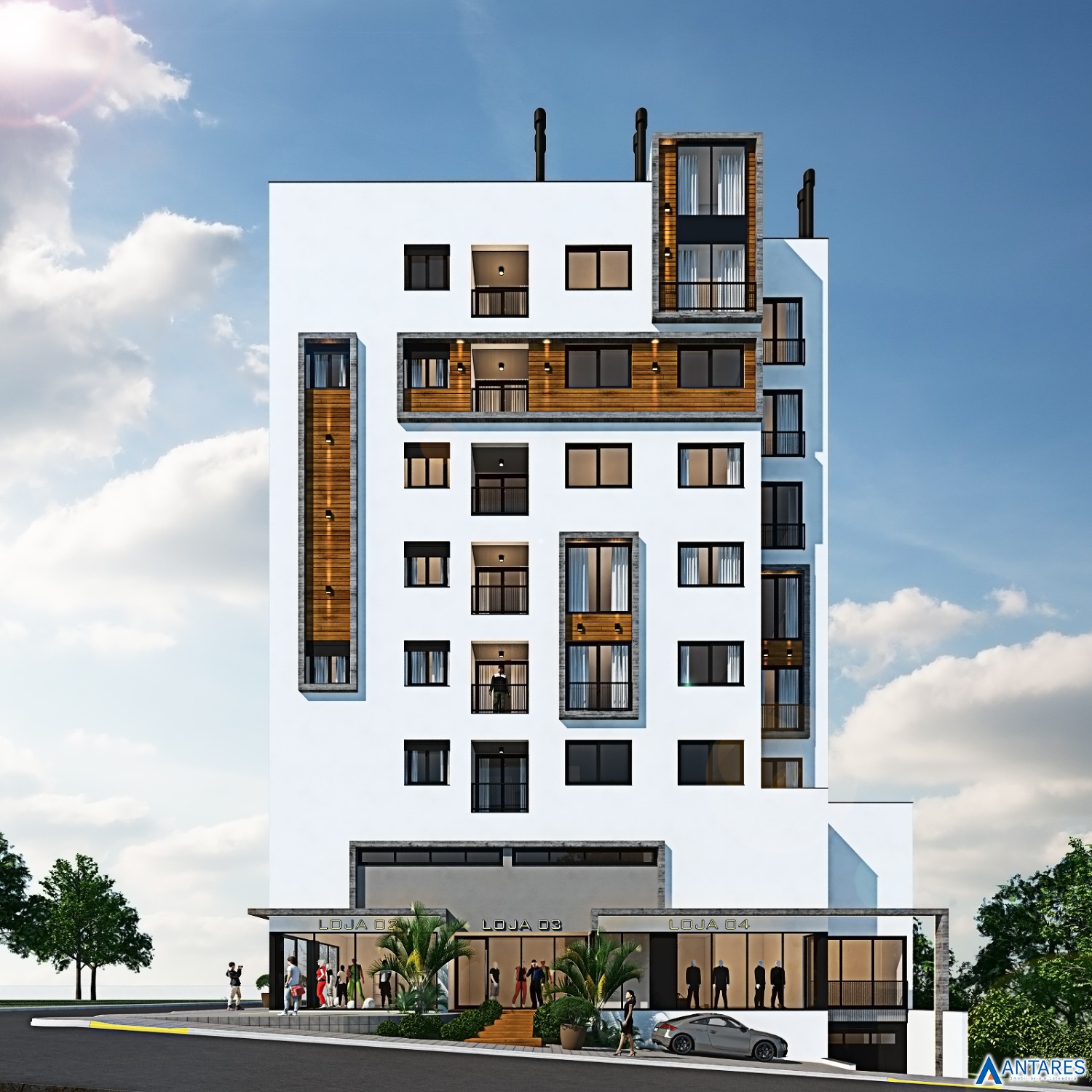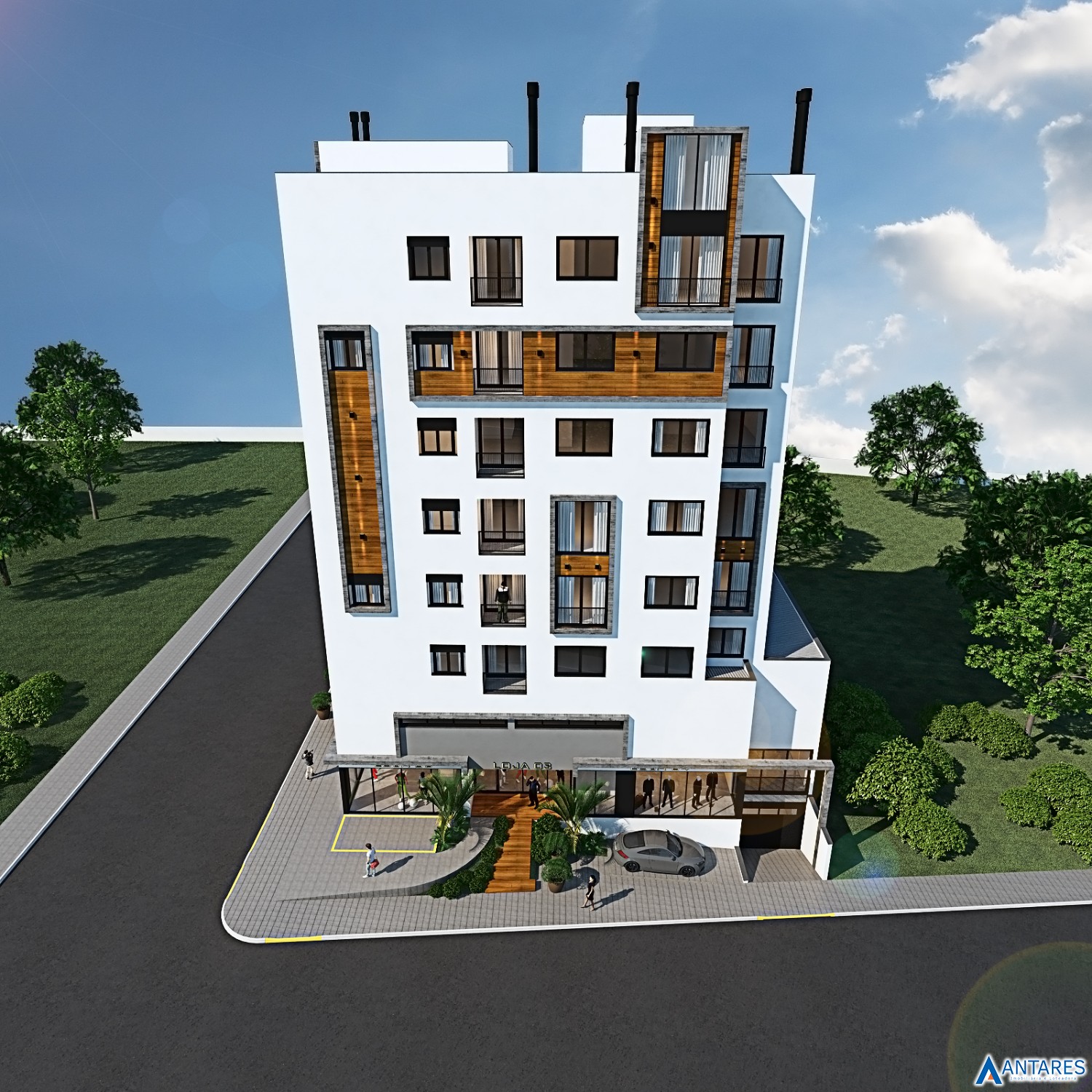 * Arquitetura externa com estilo atual e conceito minimalista
