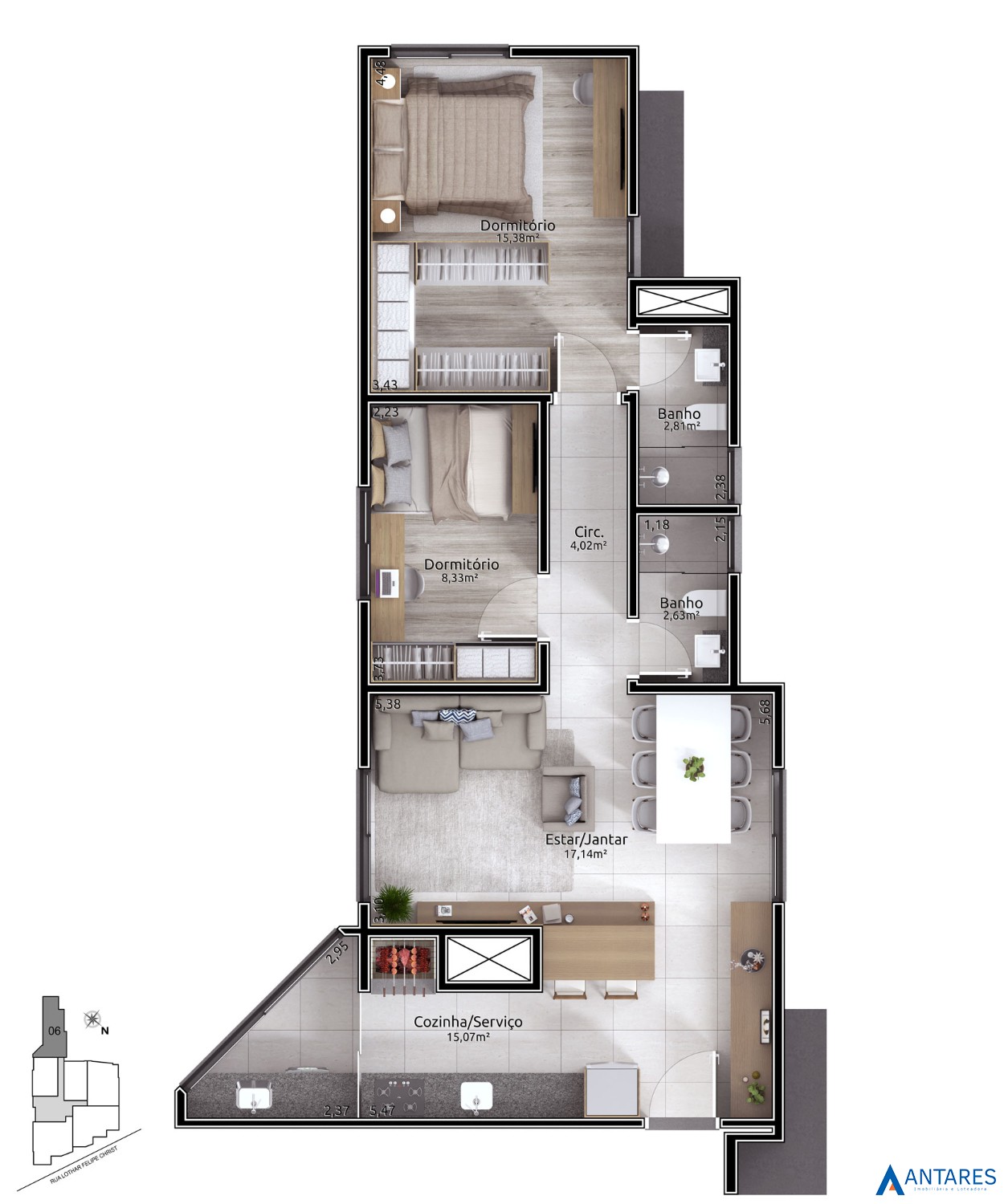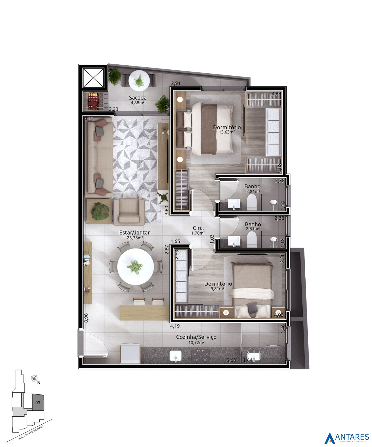 3 Dorm. | 1 Suíte(s) | 1 Box / Vaga(s)