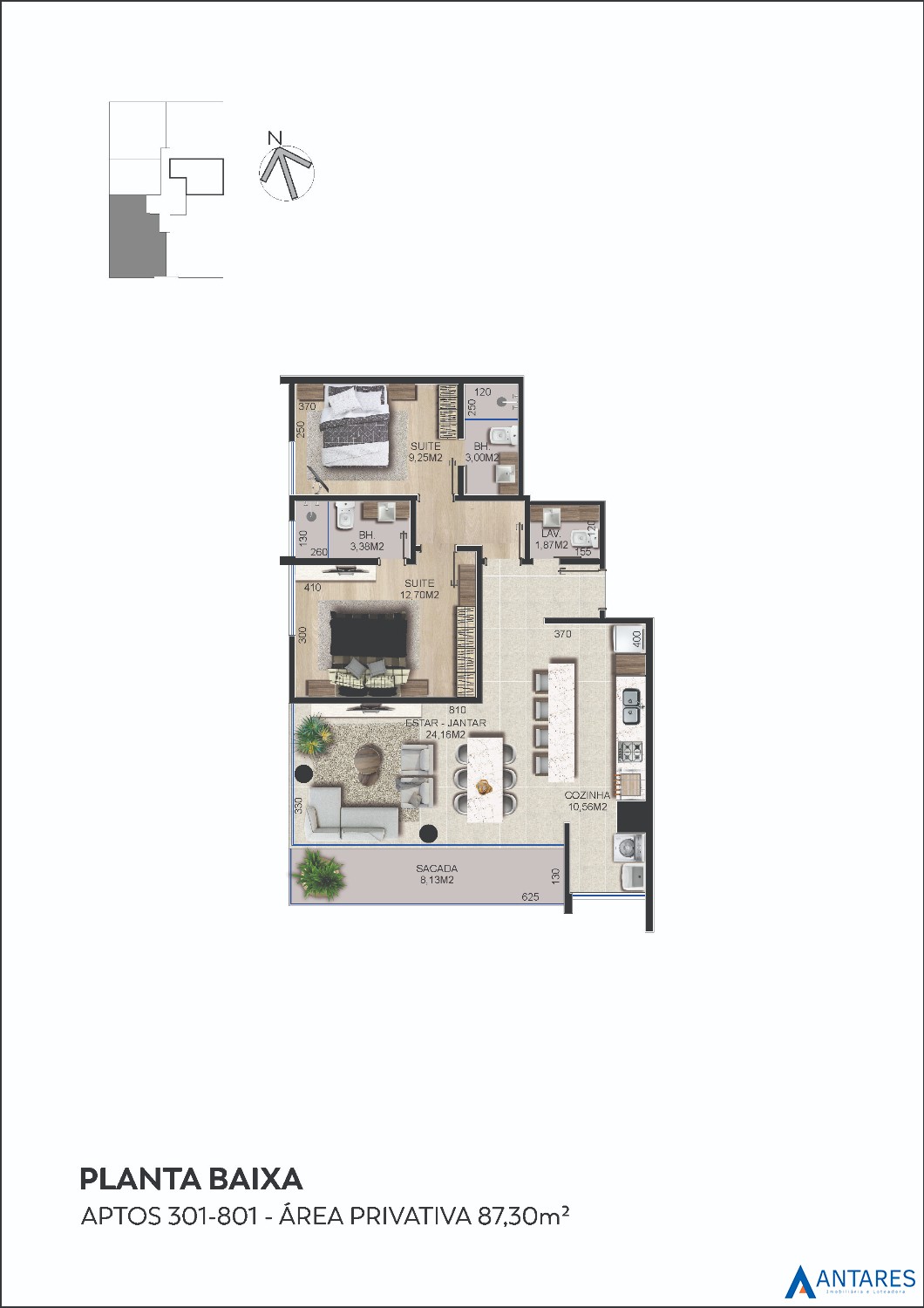 Área Privativa › 87,30m²