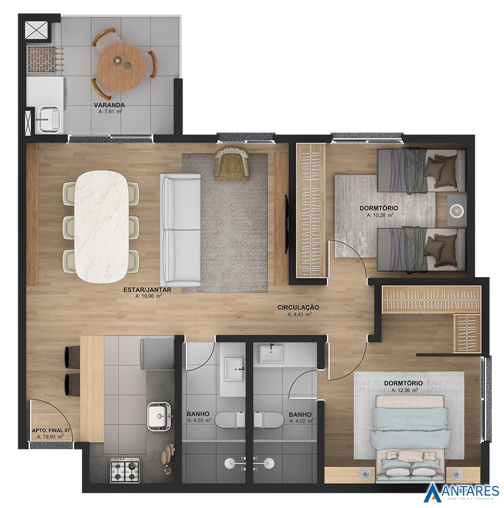 3 Dorm. | 1 Suíte(s) | 1 Box / Vaga(s)